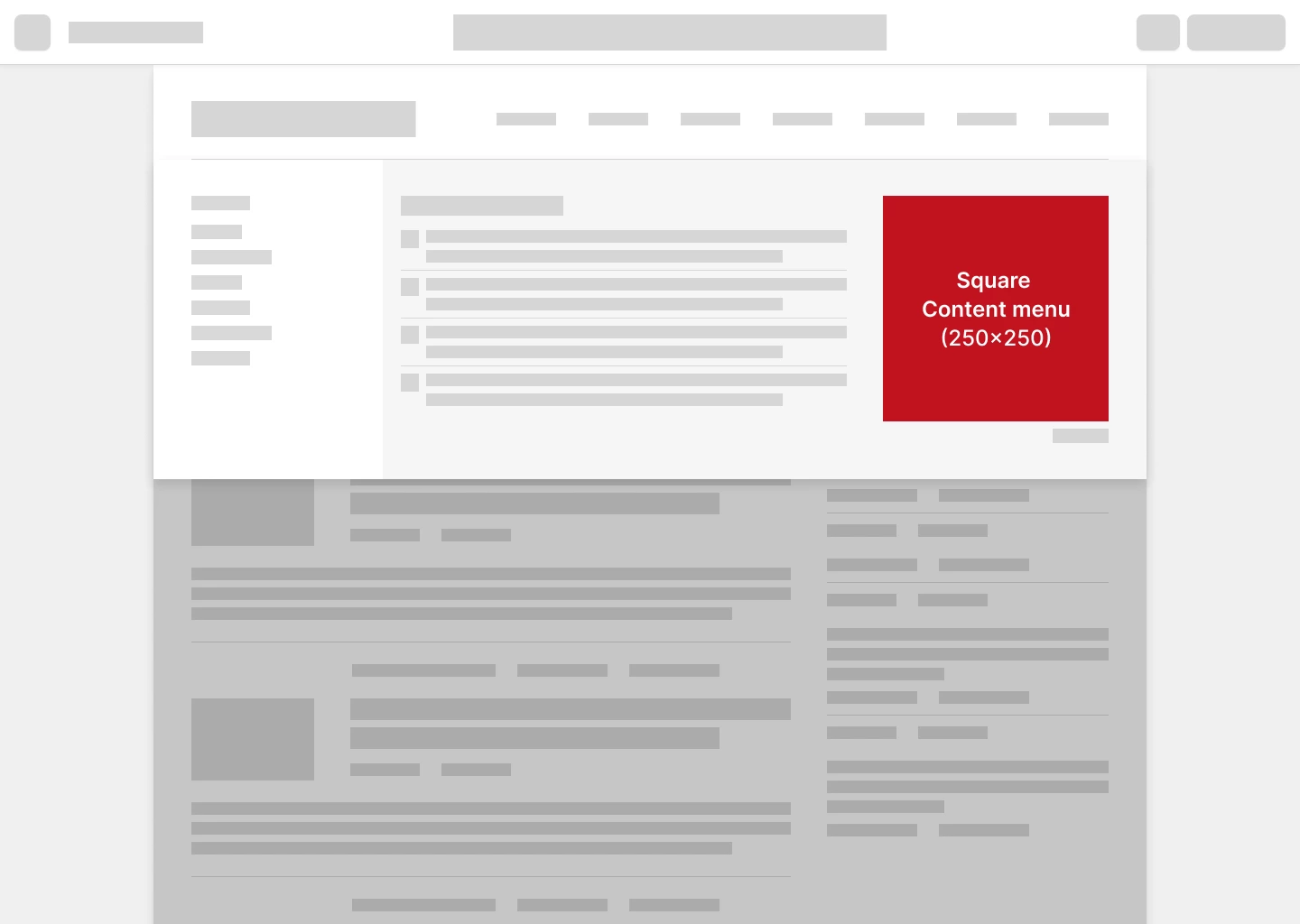 Square Content menu je čtvercový banner o rozměru 250×250 px integrovaný přímo do kontextového menu v obsahové části webu. Tento formát, určený výhradně pro desktop, přirozeně doplňuje navigaci v rámci obsahu a oslovuje uživatele v momentě, kdy se aktivně orientují na webu. Díky svému umístění v kontejneru s informacemi nabízí inzerentům možnost nevtíravého, ale vysoce relevantního zásahu cílové skupiny.