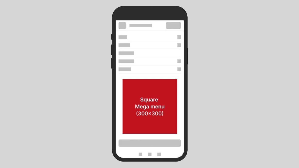 Square Mega menu je čtvercový banner o rozměru 300×300 px umístěný v rozbalovacím hlavním menu webu. Zobrazuje se na desktopu i na mobilních zařízeních po kliknutí na ikonku burger menu, kde doplňuje standardní navigační položky. Díky umístění přímo v hlavním menu oslovuje uživatele v okamžiku, kdy aktivně procházejí obsah webu a rozhodují se, kam dál přejít – ideální příležitost upoutat jejich pozornost v pravý moment.